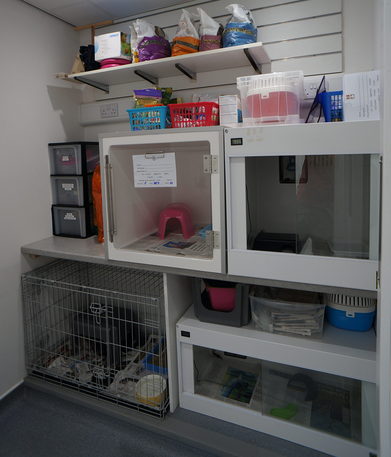 We have a spacious dog ward with kennels of varying sizes, including two large walk-in kennels. The room is kept topped up with friendly, dog-calming pheromones.